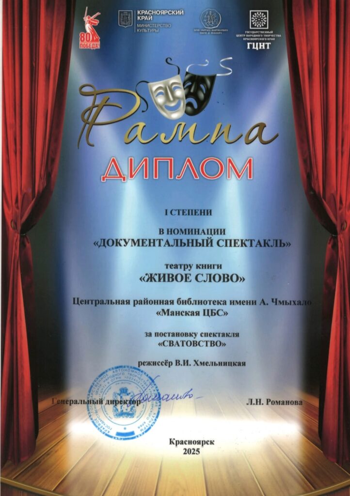 Театр книги «Живое слово» при Центральной районной библиотеке имени Анатолия Чмыхало под руководством В.И. Хмельницкой и режиссера М.С. Якуниной принял участие в отборочном туре краевого … Читать далее