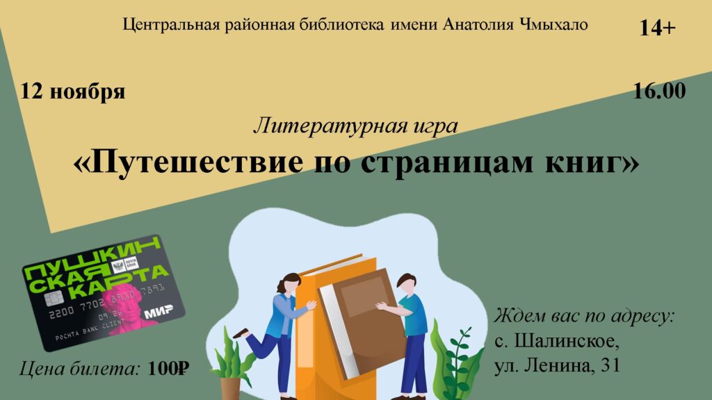 "Пушкинская карта" купить билет. Центральная районная библиотека имени Анатолия Чмыхало