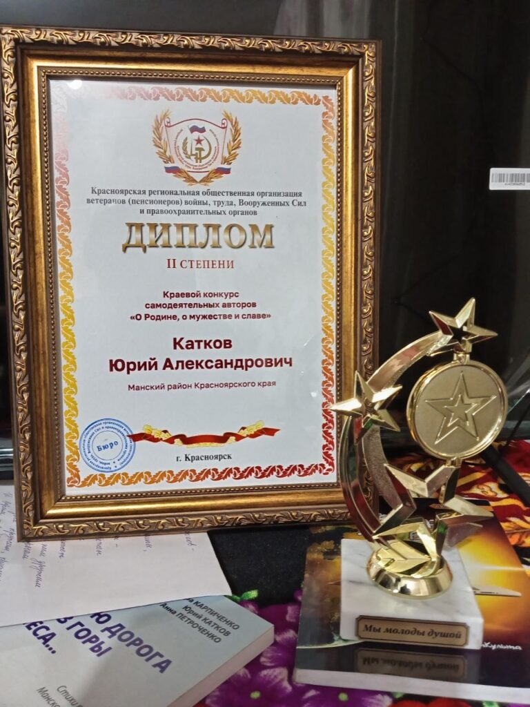 Манский район на этом мероприятии представил Юрий Александрович Катков, ветеран локальных войн, поэт и активный участник Центральной районной библиотеки имени Анатолия Чмыхало. В номинации «Авторское литературное произведение» он представил свои стихотворения «Затрёхсотило», «Уж 80 лет мы помним» и «Война – хоронят под берёзами», за что был удостоен диплома II степени.
